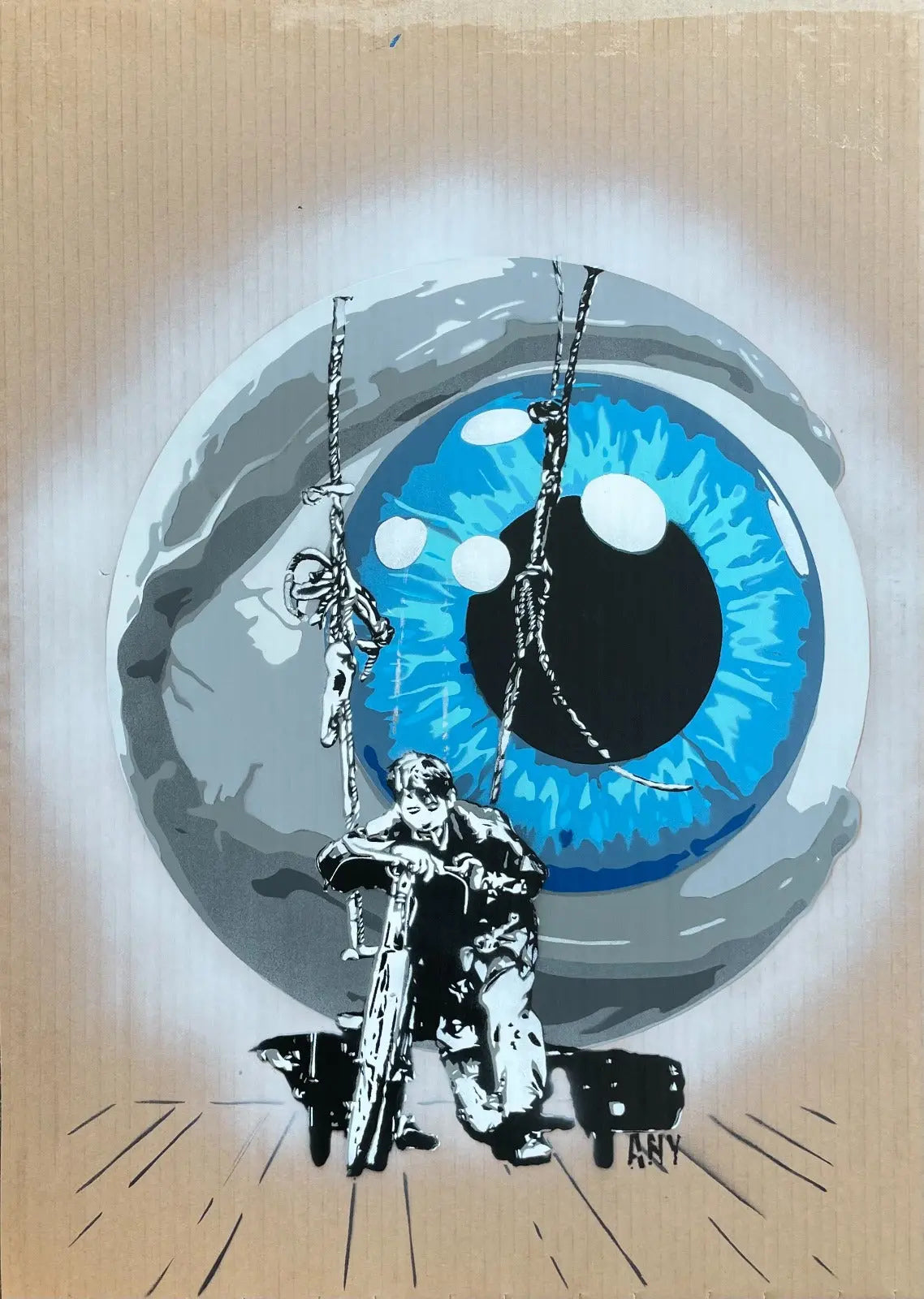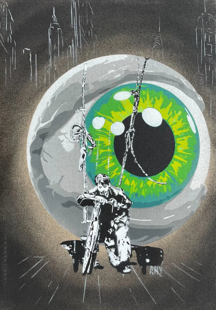 Spotlight Pink by Any captures the ethereal beauty of a ballerina against a deep pink background, combining the elegance of dance with the expressive power of street art.