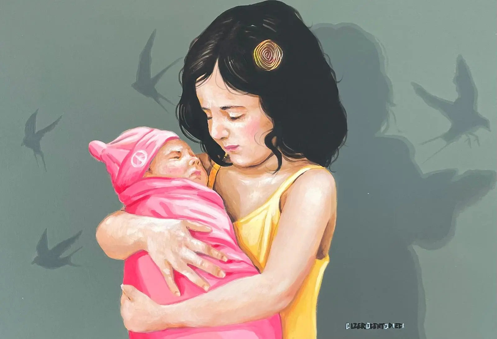 Avvenire di C0110 è un’intima dichiarazione d’amore verso il futuro. L’abbraccio tra le due figure diventa simbolo di cura e rinascita, mentre i toni caldi e le ombre leggere conferiscono all’opera una profondità emotiva silenziosa. Un ritratto che parla di speranza, legame e forza gentile.