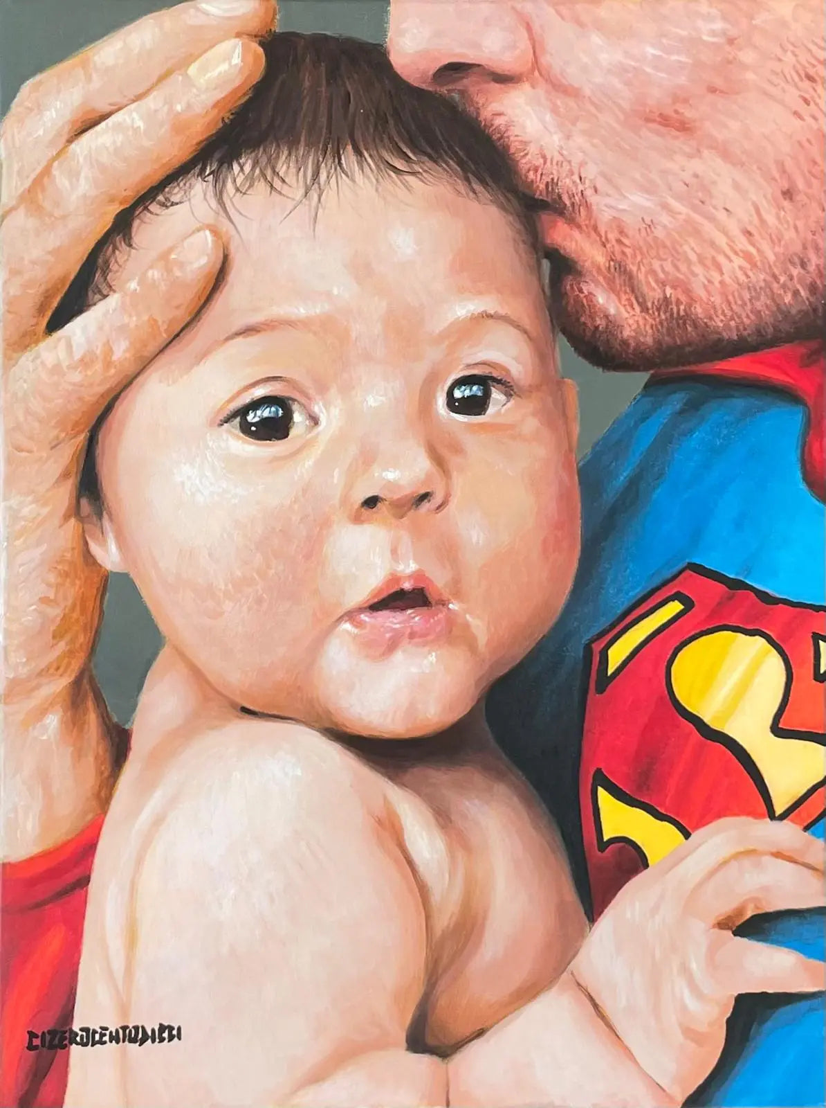 Un Posto Sicuro di C0110 è un ritratto tenero e potente che celebra la forza dell’affetto. Il contatto tra padre e figlio si trasforma in gesto protettivo e simbolico, mentre il dettaglio del costume da supereroe amplifica il senso di fiducia e appartenenza. Un’immagine che racconta silenziosamente l’amore come prima forma di coraggio.
