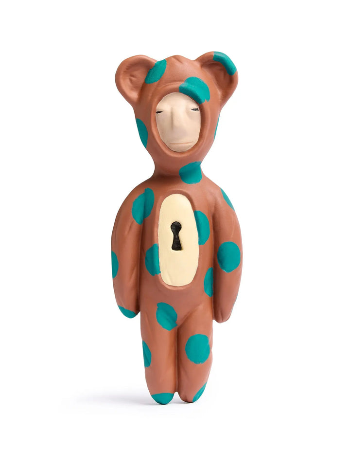 My Secret di Tony Gallo è un piccolo universo di poesia e mistero. La figura dolce e silenziosa, con la sua serratura simbolica sul petto, suggerisce segreti custoditi e mondi interiori da scoprire. Tra forme morbide e colori sognanti, l’opera invita a entrare in uno spazio intimo dove immaginazione ed emozione si intrecciano.